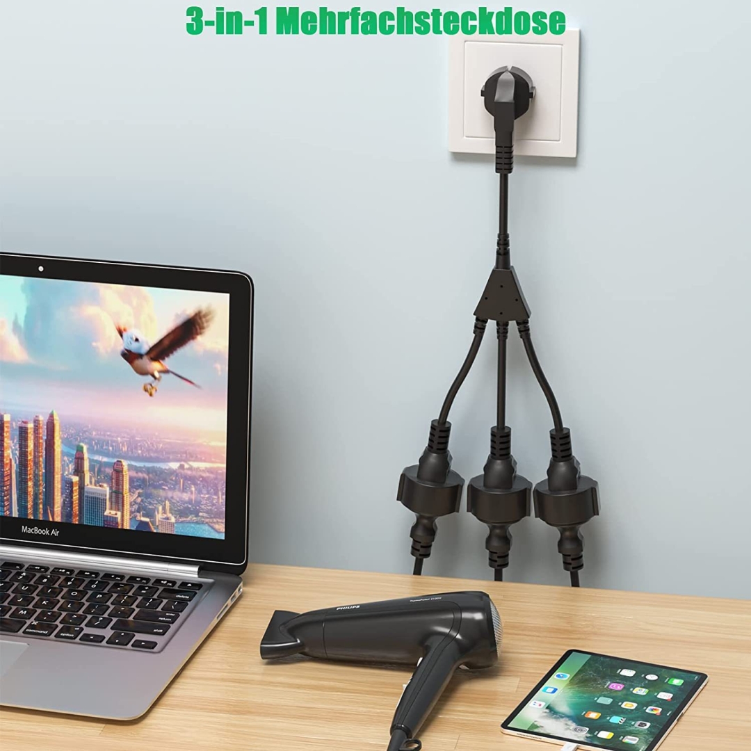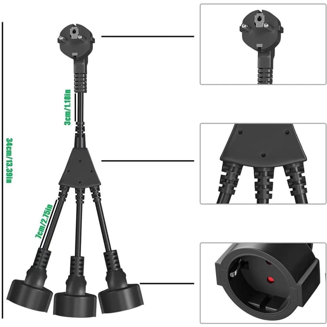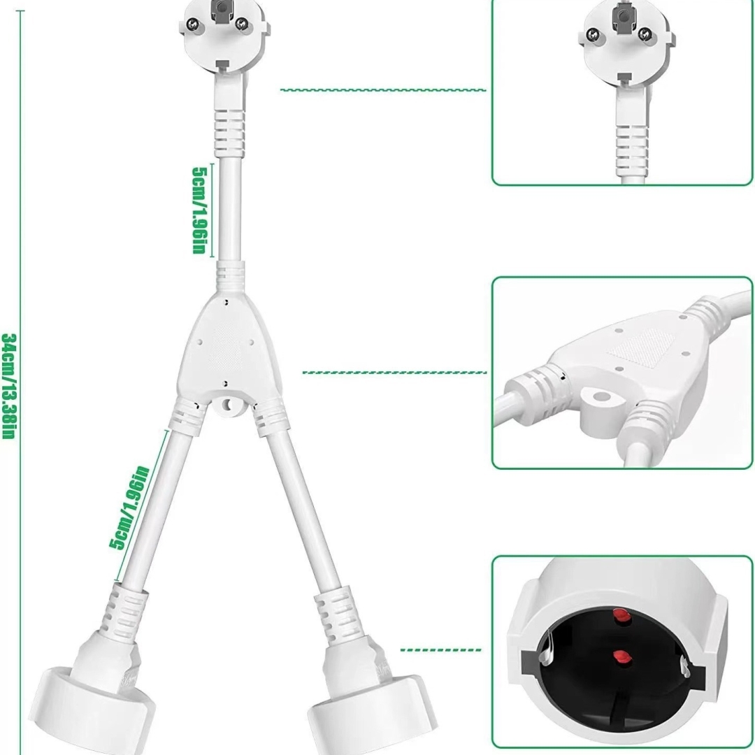45 cm 3-Way External Power Extension Cord, 250 V European Extension Cord with European Plug and Female Plug